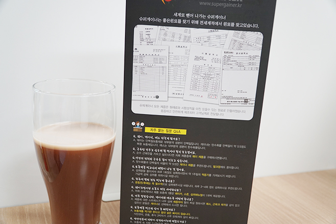 벌크업 보충제로, 초코맛을 가졌습니다.
