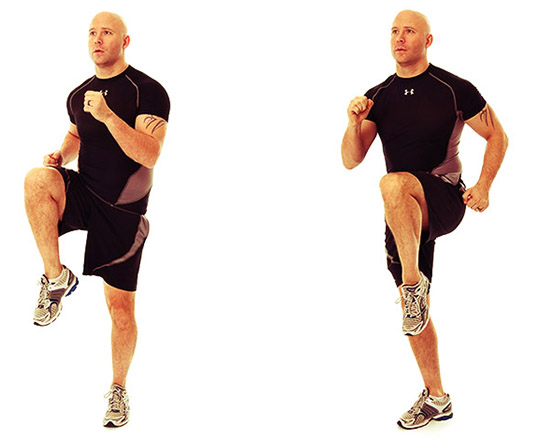 무릎을 올리는 하이 knee 운동입니다.