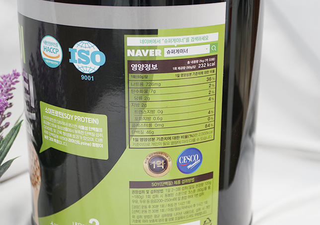 확인했어요. 단백질쉐이크에 HACCP 식약처