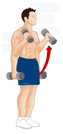 전완근, 손목 부분만 움직여서 위로 팔을