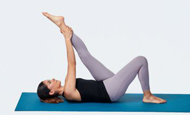 누운 다음에 다리를 하나 들어주세요. 손으로