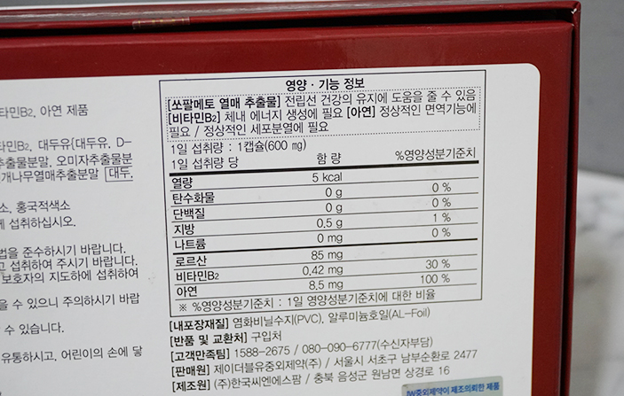 부성분 물질도 따라옵니다. 비타민B2에 아연입니다
