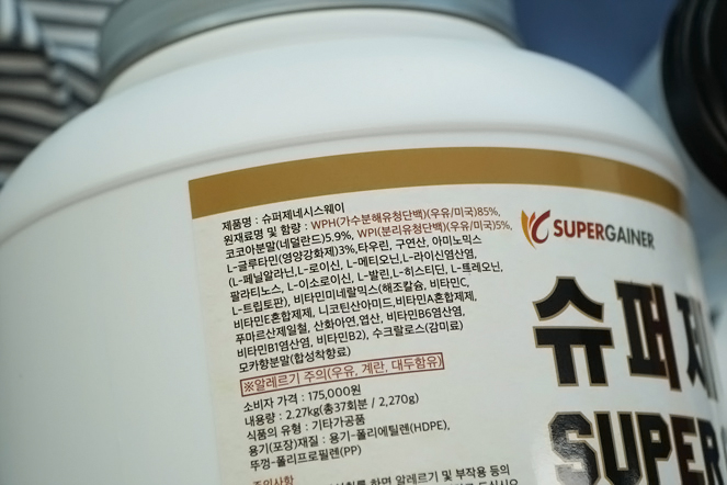 그리고 단백질파우더 종류에 관해서인데요. 슈퍼제네시스웨이 처럼 웨이-라고 붙은건 단백질파우더의 단백질 함량이 아주 높은 것이구요. 매스나 게이너 이렇게 붙은건 단백질 함량이 50프로 이하라고 합니다. 나머지 자리를 탄수화물이 채우고 있는 것이죠. 단백질 섭취에 탄수화물 섭취까지 다 필요한 분은 이런걸로 섭취하시면 됩니다. 보통은 체형이 말랐고 체지방을 높여야 되는 분이 해당되겠죠?