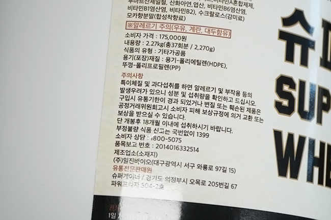 단백질보충제를 전문으로 판매하는 곳 - 슈퍼게이너에서 나온 제품이라고 합니다. 우리나라 회사라고 하구요. 보통 보충제의 제조과정이 단백질의 원료 같은건 미국 회사꺼가 유명해서 유명한 단백질 원료를 가져와서 우리나라에서 보충제를 만드는 형식이라고 하더라구요. 적혀있는거 보니까 슈퍼제네시스웨이도 제품은 울나라에 생산공장이 있었어요.