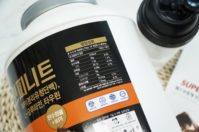 게이너보충제기땜에 단백질에 탄수화물까지 비슷하게 더해져있습니다. 2가지의 함유량이 비슷하다는 얘기죠. 원래 게이너 라는게 비율 반반씩 가지는 헬스보충제입니다. 벌크업을 하거나 근육량을 높일 계획이 있다면 제 슈퍼인피니트게이너 처럼 유청단백질 함유가 높은 것이 좋은거고여 보충제에 보면 이렇게 써져 있어요 여기에도 분리 유청단백질 이라고 나와 있는게 보이시죠 이게 유청단백질 함유 표시입니다.
