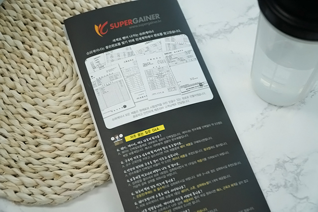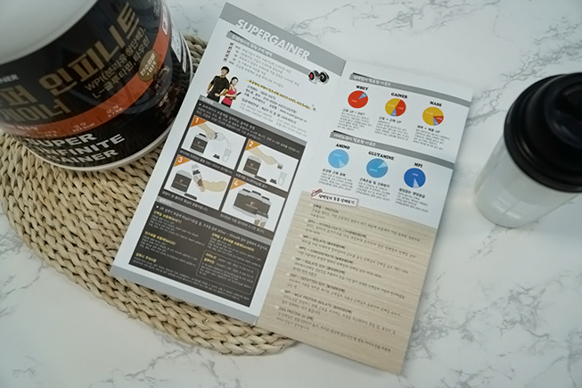 살찌는 보충제를 시키면 전단지도 같이 딸려와요. 전단지 내용은 먹는법 소개하고 단백질 정보도 있고 저거 오른쪽꺼 펼쳐보면 수많은 보충제들이 쭉 나열되어 있습니다. 빼먹고 안찍었네요ㅋㅋ 어차피 보충제 종류 소개들이라서 걍 홈페이지에도 나와있는 사항들이고여 먹는 사람이 봐야될 부분은 왼쪽의 먹는법! 권장하는 분말양도 나와있고 언제 먹는게 좋은 건지도 나와있고여