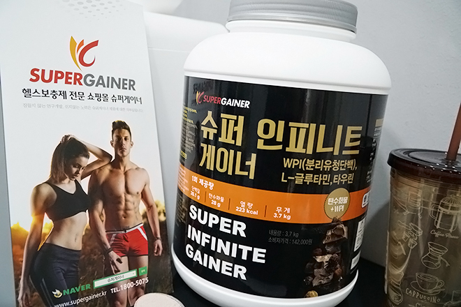 슈퍼인피니트게이너는 행사제품으로 산거예요. 슈퍼게이너 온라인 사이트에서 행사를 하고 있는 상품이었는데, 1+1 event 하는게 제일 괜찮아보여서 원플로 산것입니다. 궁금하신 분 있음 사이트 가보시라고 남겨요ㅋㅋ
