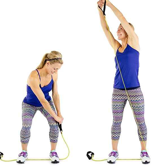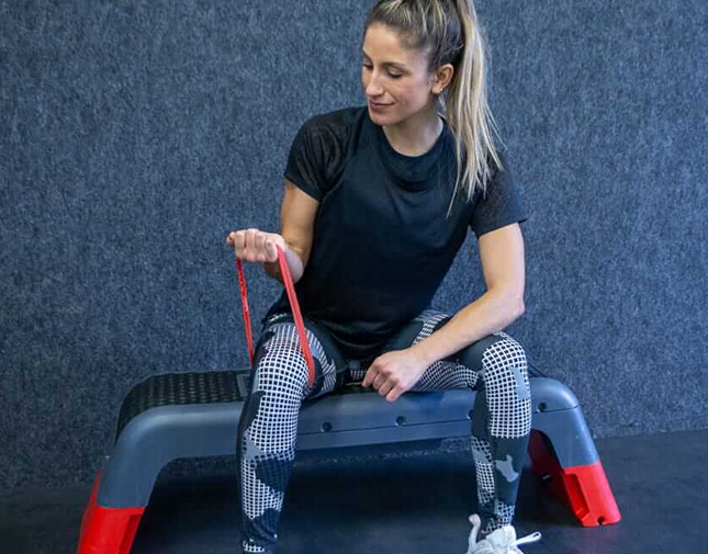 근육 상승을 위한 동작을 밴드 운동으로