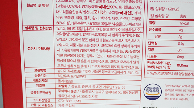 홍삼농축액은 6년근 홍삼 원료였구요.