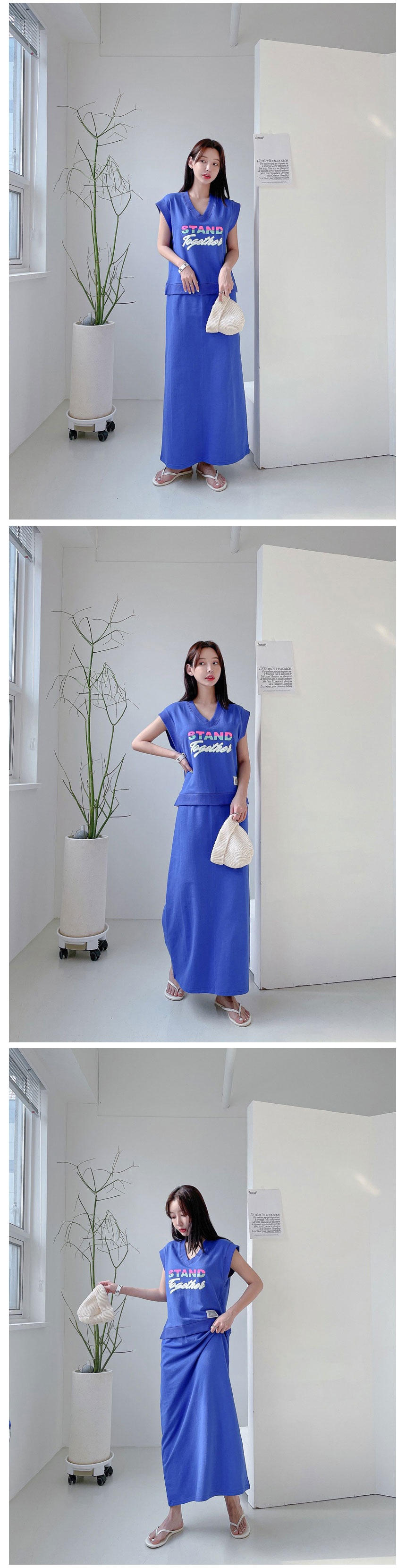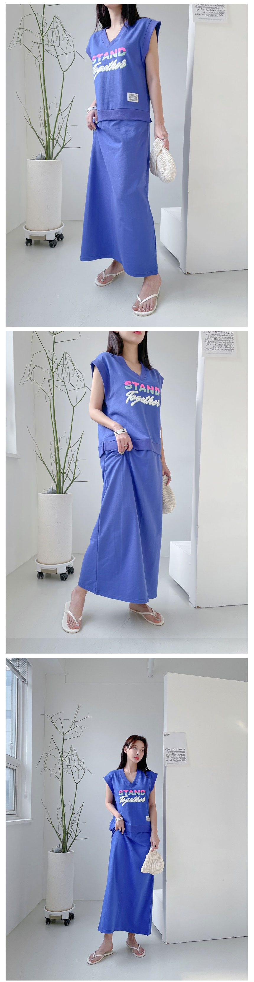 와우조타 - [와우우먼] 레터링 민소매 나시 투게더 롱원피스