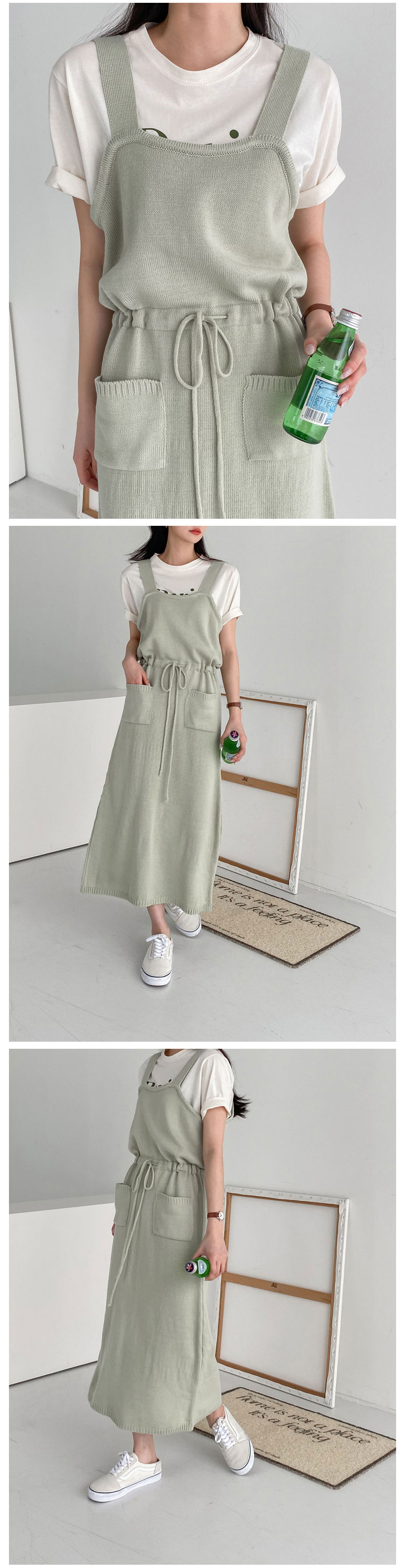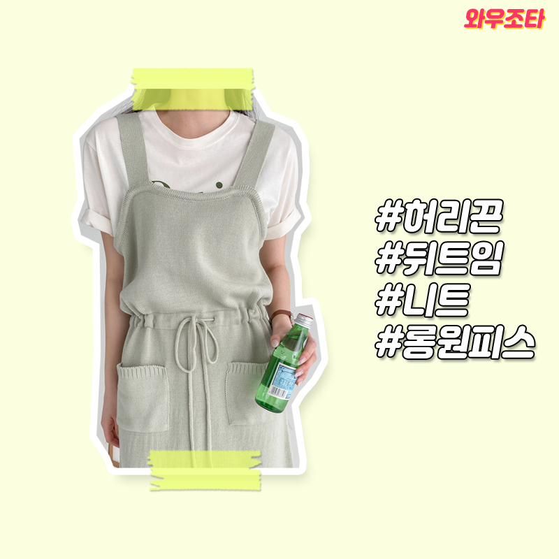 와우조타 - [와우우먼] 뒷트임 허리끈 어깨끈 니트형 롱 원피스 / 오버롤OPS / 홈웨어룩