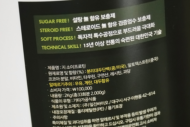 (대두 단백질)이 100 % 인데영