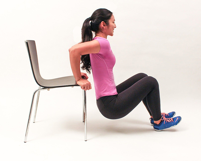 벤치 딥스 동작을 다시 보겠습니다