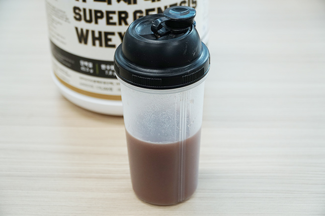 이 웨이프로틴은 물을 타서 완성했어요