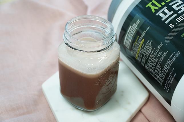 4스푼의 파우더를 타서 만든 벌크업보충제예요. 쵸코우유처럼 생겼는데, 마셔보면 맛도 비슷해요 맛있다는 얘기 입니다ㅋ 맛이 있어서 챙겨먹을 맛도 나고, 스트레스 안받고 먹고 있어요. 벌크업 운동은 엄청 힘들긴 하지만 다 하고나면 스트레스가 오히려 풀리는 느낌이라? 에너지를 많이 써서 힘없긴 한데 이때 먹으라고 게이너보충제가 있는거거든요.