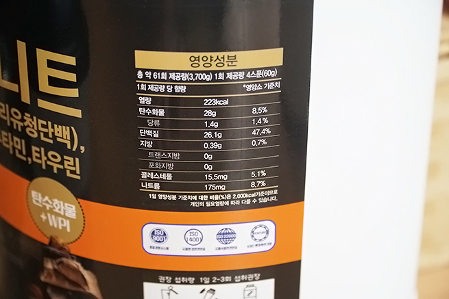 더 확실한 함량은 이걸 보면 안답니다. 탄수화물 단백질이 26.1 : 28 이에요. 흡사하게 성분을 가지고 있는 벌크업보충제라서 게이너효과가 살크업으로 이어질 위험도 적다고 하더라구요. 살크업은 근육돼지에서 돼지의 성향이 더 강한..체격을 말하는데요ㅋㅋ 덩치 큰 근육체격을 만든답시고 탄수화물만 냅다 먹으면 살크업이 된다고 하더라구요.