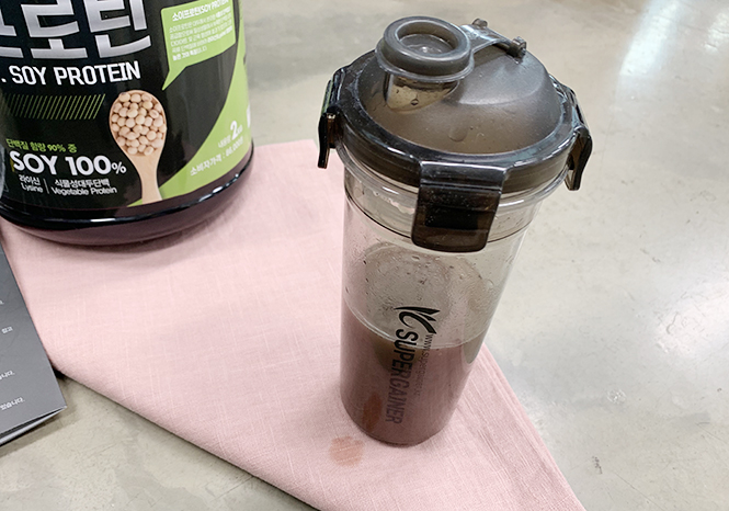 단백질 파우더에는 우유를 따라서 흔들어서