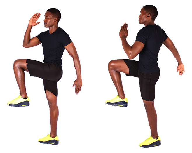 무릎을 올리는 하이 knee 운동입니다.