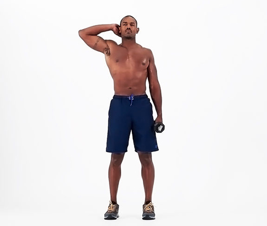 덤벨이 있는 손은 움직이지 마시고 편하게