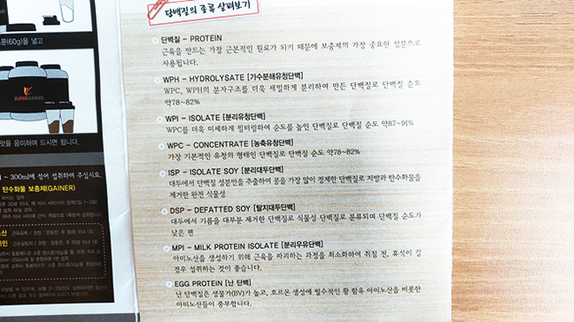 보충제 설명서에 단백질 설명이 있습니다.