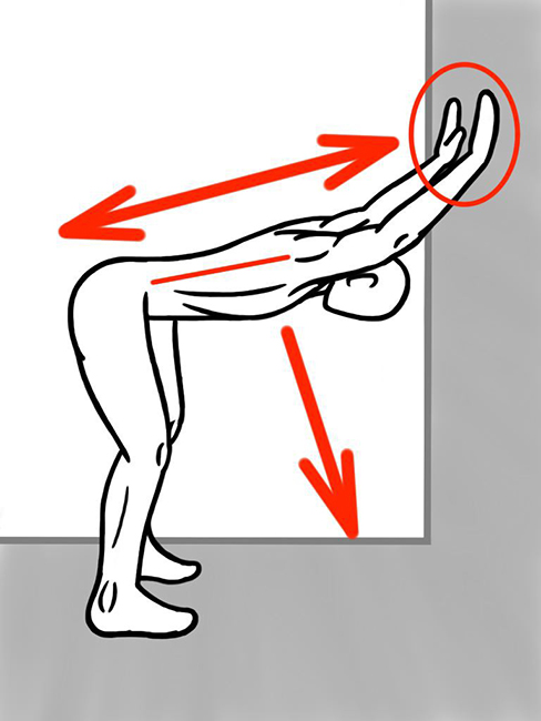 벽에서 조금 떨어지고 벽에 손을
