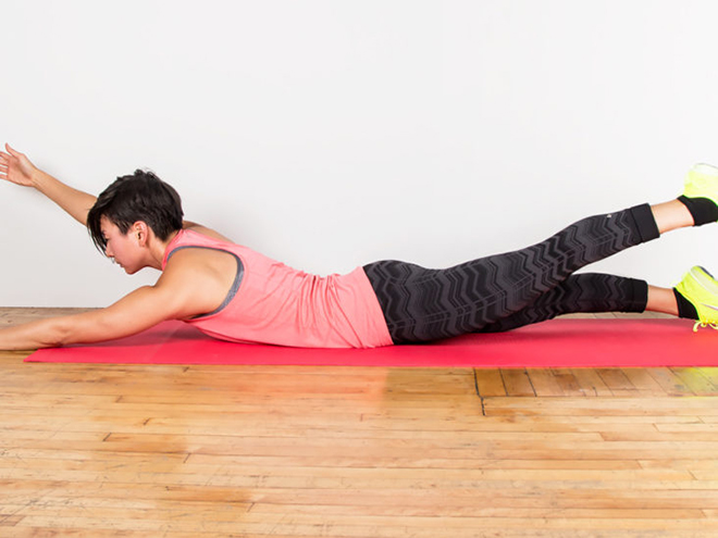 왼팔과 오른 다리로 반복합니다.