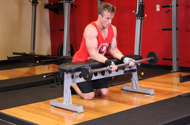 낮은 무게 바벨을 잡고